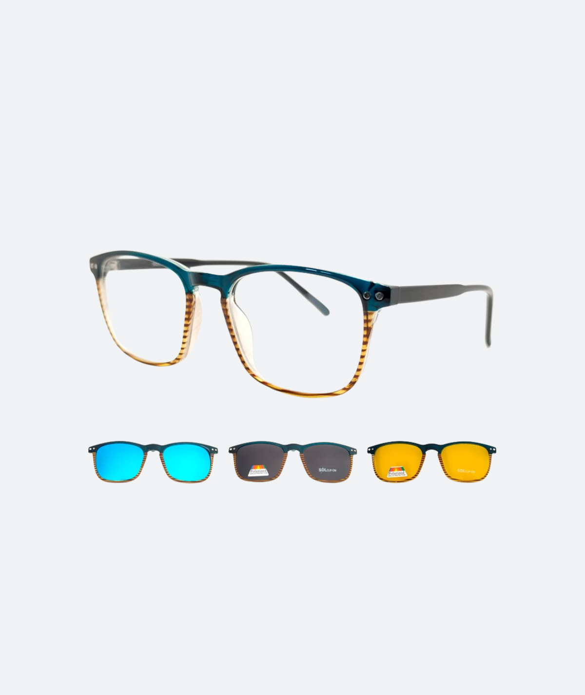 Clip jaune, Clip mirroité bleu, Clip noir, Monture + 3 clips