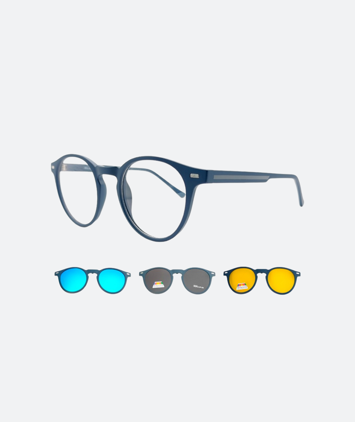 Clip jaune, Clip mirroité bleu, Clip noir, Monture + 3 clips